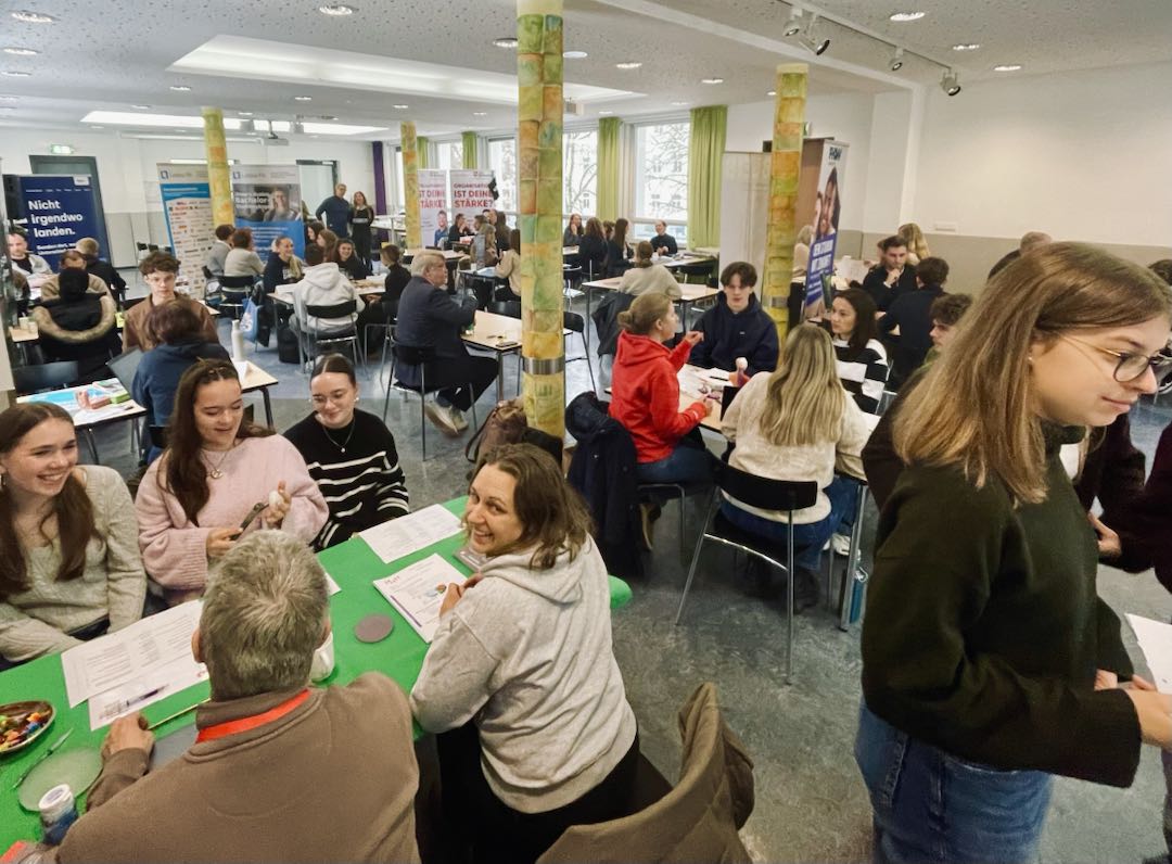 Ein wichtiger Bestandteil sind immer die Speed-Datings, wo auch diesmal wieder 20 Berufsfelder und Weiterbildungsmöglichkeiten vorgestellt wurden. Die Spannbreite ging dabei von Bundeswehr bis AOK, auch verschiedene Hochschulen waren zu Gast und stellten sich den Fragen der Schülerinnen und Schüler, die wie auf einer Berufsmesse von Stand zu stand schlendern konnten.